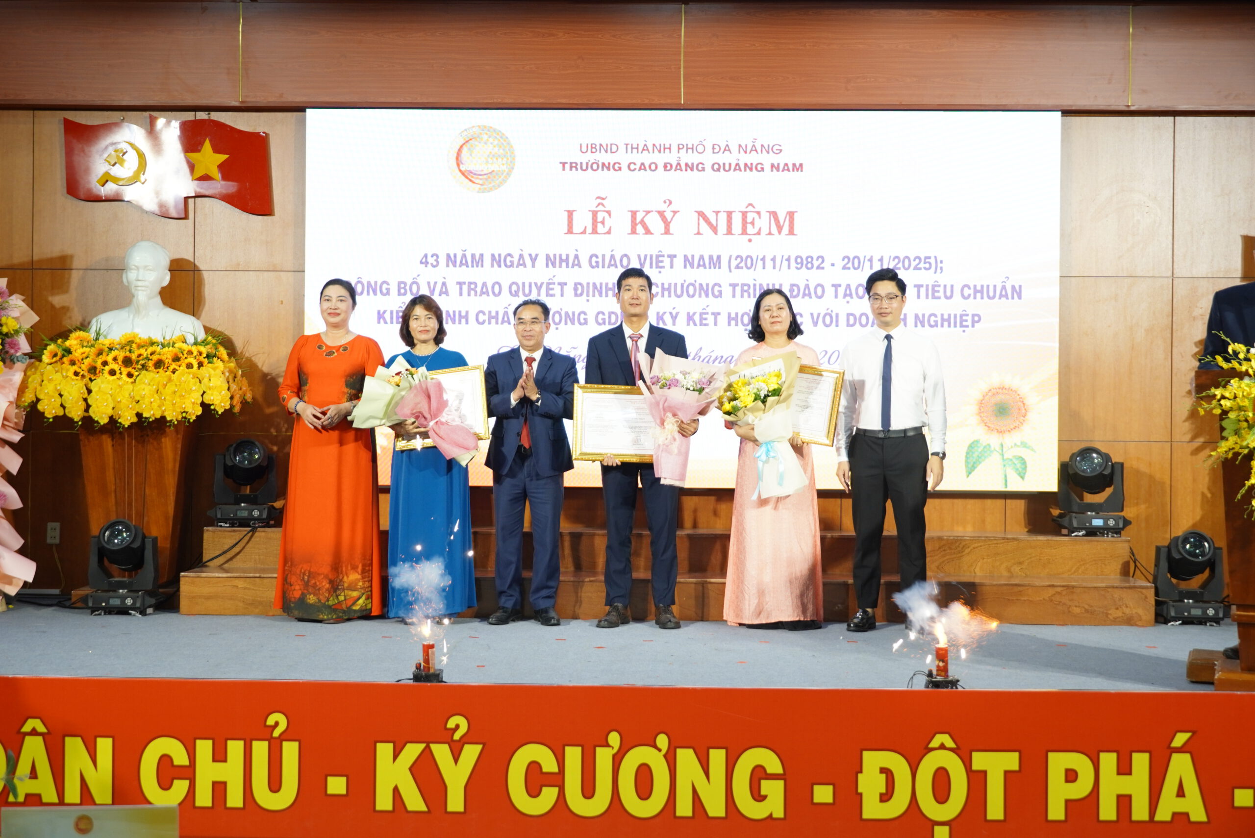 Ngày 10/11/2025, Trường Cao đẳng Quảng Nam tổ chức lễ kỷ niệm 43 năm Ngày Nhà giáo Việt Nam; công bố và trao quyết định công nhận 3 chương trình đào tạo đạt tiêu chuẩn kiểm định chất lượng. Đây là cột mốc quan trọng khẳng định nỗ lực không ngừng nghỉ của nhà trường trong hành trình nâng cao chất lượng đào tạo và phát triển bền vững.