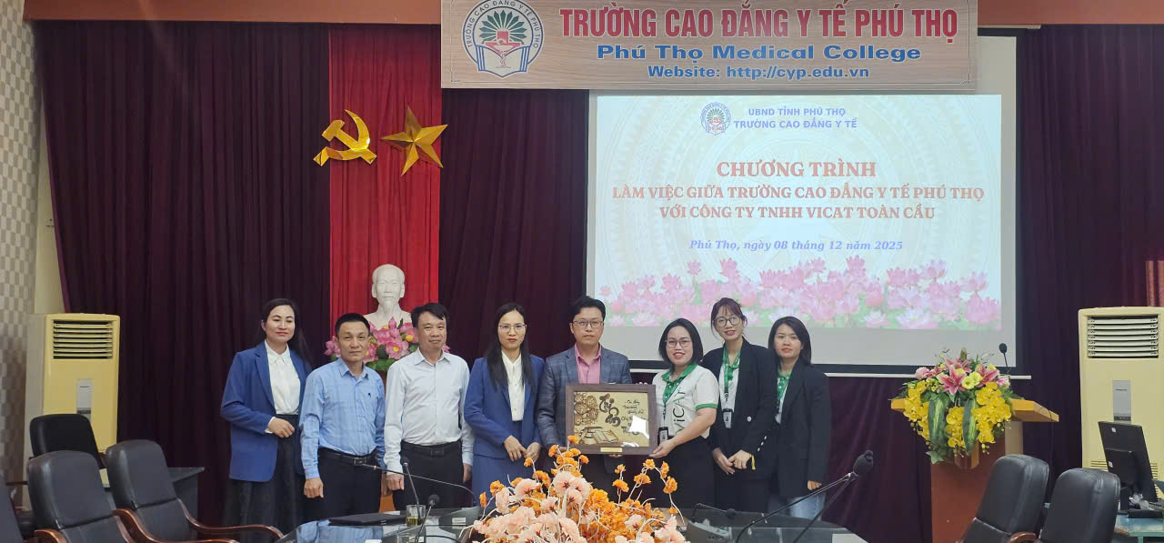 Chiều ngày 08/12/2025, Trường Cao đẳng Y tế Phú Thọ đã có buổi làm việc với Công ty TNHH VICAT Toàn Cầu nhằm trao đổi về các chương trình hợp tác trong lĩnh vực đào tạo và chuyển đổi bằng điều dưỡng tại Cộng hòa Liên bang Đức.